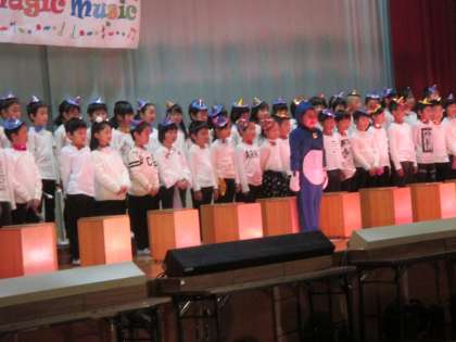 11月8日(木)に学芸会が行われました。3年生は,全体の最後から2番目の発表でした。他の学年の発表を見ている時も,そわそわして「もうちょっとやなぁ…。」と言いながら長い時間ドキドキしながら過ごしました。本番は,大きな声でゆっくり台詞を言ったり,美しい音色でリコーダーを演奏したりすることができました。最後の「ドラえもん」のダンスとカホンの演奏では,「みんなで心を一つに発表しよう!」という最後の台詞通りに,力を発揮できた発表になりました。