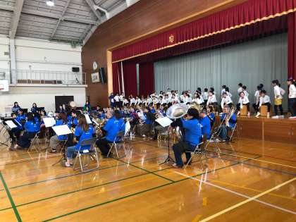 11月19日(日)に「広沢小学校おやじの会」の主催によるオータムコンサートがあり,本校の3年生が代表して出演しました。学芸会で演奏した「ドラえもん」をNEO吹奏楽団の方たちとコラボして演奏しました。学芸会では,緊張していた様子を見せていた子どもたちも,この日はニコニコしながら楽しそうな表情で発表することができました。