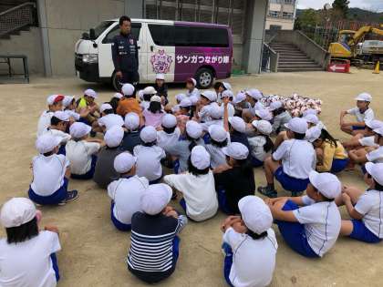 11月19日,京都サンガつながり隊の方に来ていただきました。サッカーを題材にした運動メニューにより,身体を動かすことの楽しさやコミュニケーションなどの社会生活を送るうえでの基礎的な知識と技術を指導していただきました。
