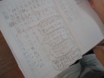 算数科の学習では,ノートに自分の気がついたことや,思ったことなどをメモするように意識しています。30日(金)にあった「九九のきまり」の学習で,子どもたちが書いている様子を覗いてみると・・・気が付いたことをノートいっぱいに書き残していました。「先生,気が付いたことが書ききれません。」という子どももいました。1時間で,自分の考えたことをできるだけノートに残し,「自分だけのノート」を作ってほしいと思っています。