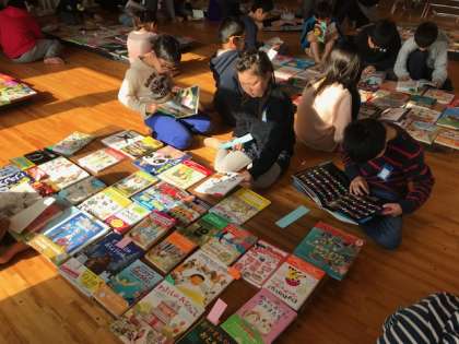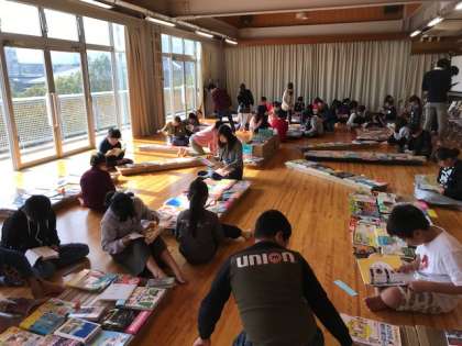 たくさんの本が並んだトレーニングルーム。子どもたちは,いろいろな本を手にし,読むことができてとても楽しいひと時を過ごすことができたようです。