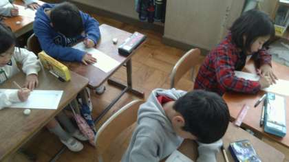 7日 3学期スタートの日は学級活動で「1年間の目標」をたてました。内容は「○○するようにする」という表現ではなく,「○○する」「○○になる」という言いきりの表現で目標をたてました。