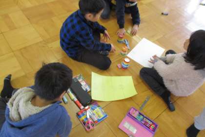 15日(火),生活科「あそんでためしてくふうして」の学習で,1年生をお楽しみ会に招待するための準備を行いました。今日は,遊びで使うおもちゃ作りの他に,ルールや注意を書きました。「1年生だから,読みやすいようにひらがなで書こう。」「どう書いたら,わかりやすいかな。」と考えながら,グループの友だちと協力して楽しんで活動していました。