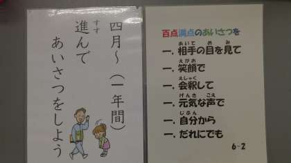 4月12日(金)にハッピーデーの学習を行いました。「すすんであいさつをしよう」というめあてを達成するために,どのようなあいさつをすればいいのかを考えました。