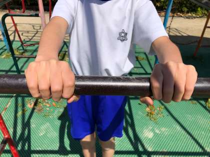 そこで,今日の体育科の学習では,「3点支持」と「順手にぎり」をしっかり守ることに重点を置いて練習して,安全に登上ったり下りたりすることができました。