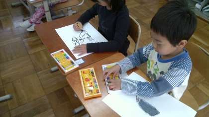何が好きかなあ〜と友達と話しをしながら楽しそうに描いています。