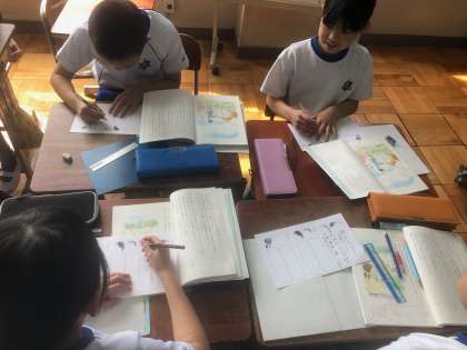 会話文や行動描写に着目して,二人の登場人物の人物像を読み取りました。