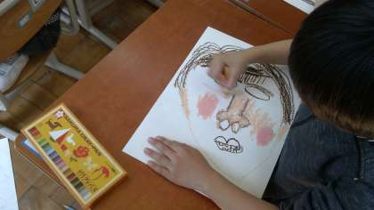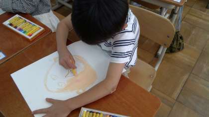 18日(木),図工の学習で自分の顔を描きました。自分の顔の形を確かめながら丁寧に書いています。「腕が筋肉痛になりそう〜」と言いながらも,完成に向けて一生懸命取り組んでいました。自分の顔がどれかわかるかな〜…?