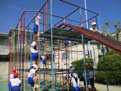 体育の学習が終わった後の中間休みには,「さっそく総合遊具で遊んできたで〜!」と楽しそうに教えてくれました。安全に気を付けて,楽しく遊んでほしいと思います。