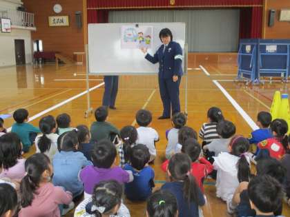 19日(金),交通安全教室がありました。自分を守るために,警察署の方から歩道の歩き方,左右をしっかりと確認することを教えていただきました。
