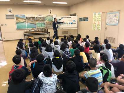 5月9日(木)に社会科の「くらしと水」の学習で,新山科浄水場へ見学に行きました。琵琶湖疏水からきた水が,どのようにして飲み水になるのかを,浄水場の方々に詳しく説明していただきました。処理していくごとにどんどん水が綺麗になっていく様子を見て,子どもたちは1つ1つの工程の意味を理解していっているようでした。急速濾過池では,砂や砂利を洗う様子から水が溜められる様子を見させていただき,「こんなにここでも汚れがとれてるんや!」「洗ってきれいにして,またろ過するんや!」と,砂を通して水が綺麗になるの?汚れが取れるの?と疑問に思っていたことが解決してスッキリしていました。