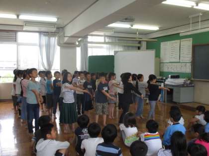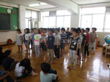 5月15日(水),1年生をむかえる会にむけて練習をしました。今日は,笑顔と声をそろえることを意識して練習しました。1組と2組で歌っている姿を見合いっこし,いい笑顔の人を見つけました。