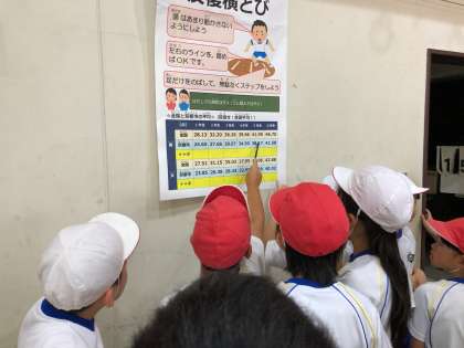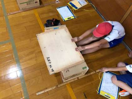 4年生と一緒に体力テストをしました。去年の記録や全国平均を見て,目標をもって全力でチャレンジしました。待つときは静かに,競技は一生懸命に。けじめをつけて頑張ってほしいと思います。