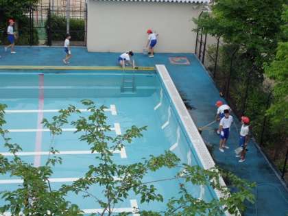 気候も良く,最高のプール清掃日和でした。子どもたちは一所懸命に汚れている部分をきれいにしていました。
