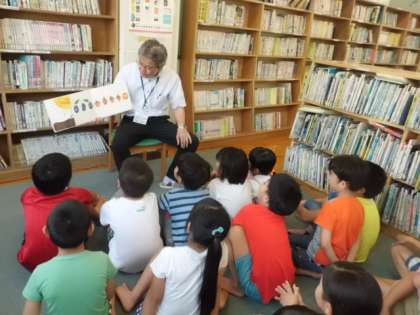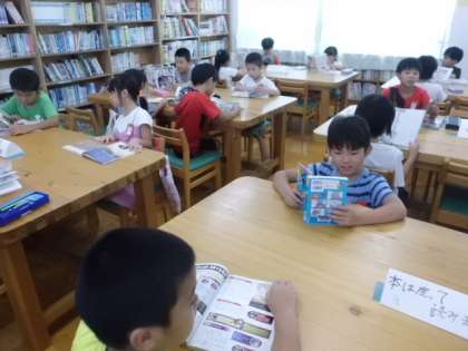 9月3日(火),今日は図書室に行って本を借りました。まず最初は,絵本の読み聞かせ。「はらぺこあおむし」のお話を聞きました。何度も聞いたことがあったお話でしたが,何度聞いても楽しい,そんなお話が「はらぺこあおむし」。