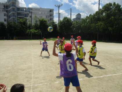 3日(火),体育科「エンドボール」で初めての試合を行いました。まずはルールを覚えて,チームでパスとつないでいくことを目標に,学習を進めました。「早く他のチームとも対戦したいな。」「今日はボールをすぐに相手に取られてしまって,うまくパスができませんでした。もっとパスの練習をしたいです。」と,それぞれが実際に試合をしてみて感じたことを,学習の最後に話し合っていました。