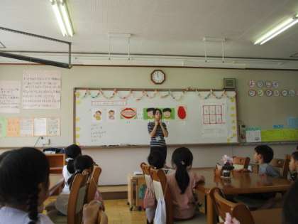 3日(火),1年2組は,栄養教諭の田上先生と食についての学習をし,その後初めてランチルームで給食を食べました。ランチルームは,学校探検の時にも入ったことがあったのですが,やはり学習をしたり給食を食べたりするのは楽しみで,大きな椅子に座って,みんなウキウキワクワク!