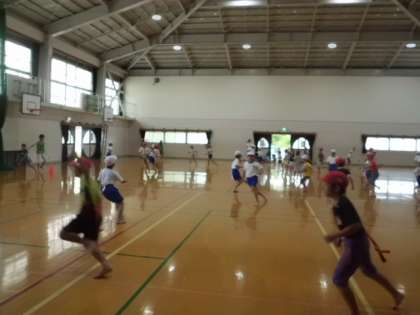 中間休み,体育館に集合し,みんなで走り回り,結果は・・・。子どもたちに聞いてみてください!