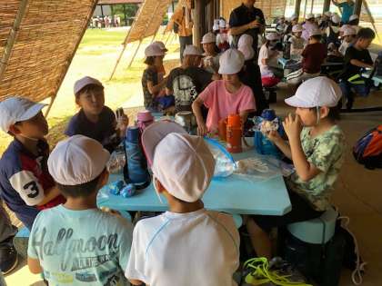 12時半頃,予定通り奥志摩みさきの家に無事に到着しました。入所式を終え,お待ちかねのお弁当タイムです。普段は給食なので,年に数回しかないおうちの方のお弁当。出発前から「お弁当楽しみ〜」と言っている子もいたぐらいです。