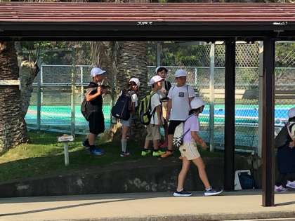 みさきの家1日目ということで,所内を探検するラリーを行いました。どこに何があるのかな?ここがバンガローか!プールもあるぞ!明日はこの芝生で遊べるんだ!班ごとに問題を解きながら所内をまわっています。