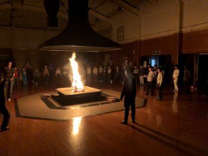 合計9つのゲームやスタンツを楽しみ,終わりごろになると火がだんだん小さくなります。最後は先生から,明日からの活動やみさき後についての話があり,みんなで心を一つに「こげよマイケル」を歌って終了しました。