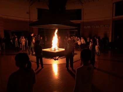 全員で円になり,自分たちの周りには思いっきり笑い合える,そして困ったときには助け合える仲間がいることの大切さが感じられたキャンプファイヤーになったのではないでしょうか。火の神様からもらった「気力の火」「思考力の火」「行動力の火」「協力の火」,4つの火にこめられた力を育てていってほしいと思います。