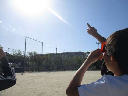 晴れた日でないと太陽を見られないため,晴れた日の朝には「今日は太陽が見られるから実験ができそう。」と楽しみにしています。