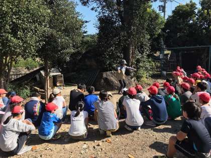 ゲストティチャーの田井先生から広沢地域に残る古墳を始め,地域の歴史についてフィールドワークを通じて教えていただきました。