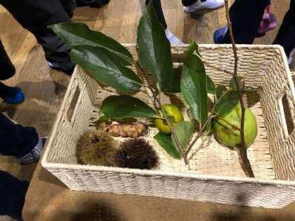 山の家の先生からは「花背の秋」として,木の実などの紹介がありました。写真は,栗・カリン・こぶし・柿です。