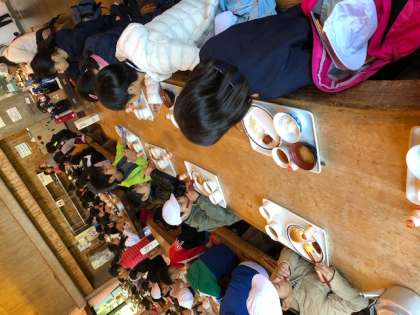 2日目の朝食は,初めての食堂でした。花背山の家の食堂は,バイキングスタイルです。自分の体調や気分に合わせておかずを選び,食事をすることができます。