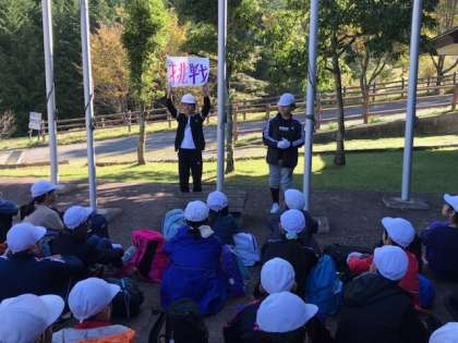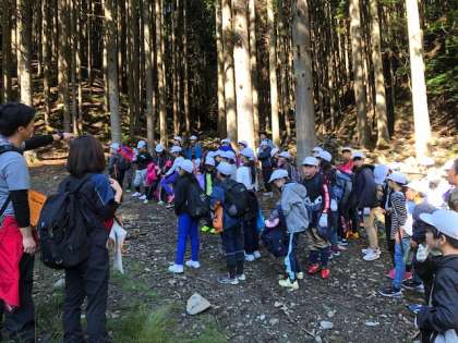 今日のメインの活動「天狗杉登山」に出発です。今日のテーマは「挑戦」。しんどいことも待ち受けていると思いますが,果敢に挑んでほしいと思います。