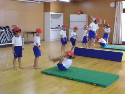 そして,少し「マットあそび」もしています。だんだんうしろまわりができるようになってきた子も!!あと一歩の子どもたちもたくさんいるので頑張ってほしいです!