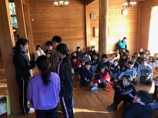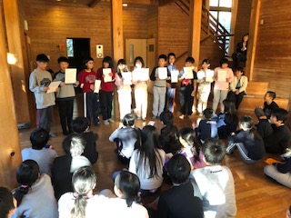 その後,昨日のオリエンテーリングの結果発表。校長先生から表彰してもらいました。