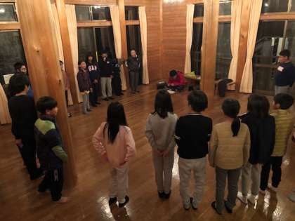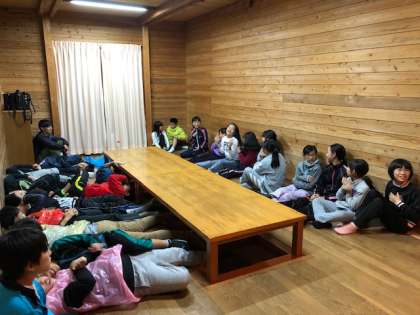 夕食の後は,各クラスでキャンプファイヤーの出し物の練習をしました。
