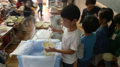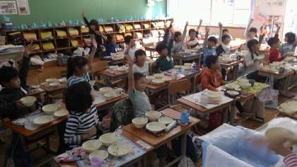 でも,「ごはんといっしょに食べるとおいしいよ!」と調理員さんに教えてもらうと,ごはんをたくさんおかわりして,ちょっと酸っぱいしば漬を「おいしい!」と食べていました。「おいしかった人?」と聞くと,「は〜い!」とたくさんの子が手を挙げていました。