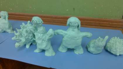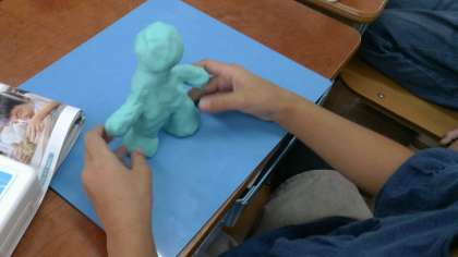 1年生は,粘土で「動物といっしょにお散歩する自分」を作りました。