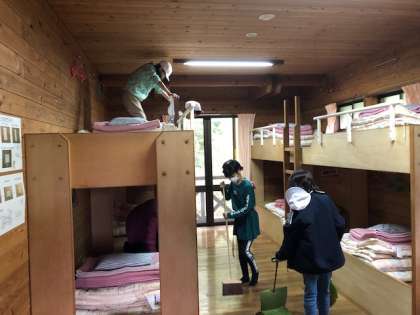 朝食の後,大掃除をしました。3日間お世話になった部屋に感謝の気持ちを込めて,そして,次に来る学校の人たちのことを考えて,「来た時よりも美しく」なるように頑張りました。