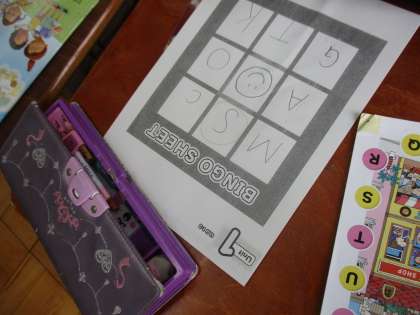 18日(金),外国語科「アルファベットとなかよし」の学習で,みんなでビンゴゲームをしました。好きなアルファベットを8つ選び,ビンゴシートに書いたらゲームスタートです。ALTのミーガン先生が1字ずつ発表していくたびに,「あったー!!」「え〜,ない・・・。」と子どもたちの声が響きました。