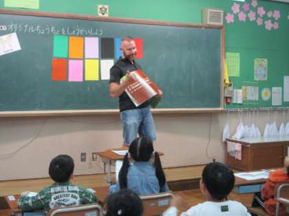 21日,1年生はアンディー先生といっしょに「a Beautiful Butterfly」の学習をしました。