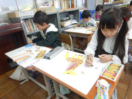 8日(金),図画工作の時間に楽しかった思い出を思い出し,描きました。今日は学芸会があったので「学芸会のことを描こう。」や「係の生き物係のことを描こう」など楽しい思い出はそれぞれあるようです…。どんな絵ができるかな…?