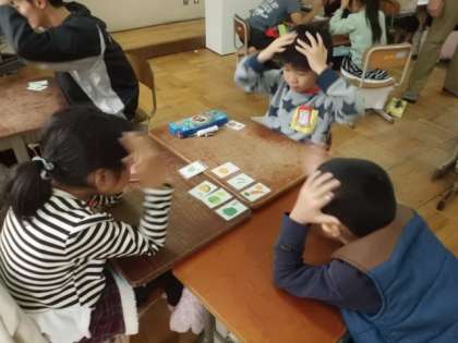 「20を言ったらアウト!」という日本語で言うとすごく簡単なゲームを英語でしました。その中で,子どもたちは楽しみながら何度も数を言うことができました。「毎回アウトになる〜!!」と悔しがりながらも一生懸命数を言う姿は,印象的でした。