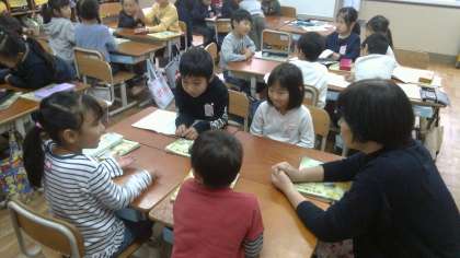 28日(木),生活科でどんぐりフェスティバルの準備をしています。班で話合いをして遊びを決めて計画を立てています。どんな出し物を考えているかな…?「こんなルールにしよう」「勝った人には,賞状渡そうかな…?」それぞれアイデア満載でとても楽しいどんぐりフェスティバルになりそうです…。