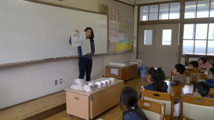 21日(火),栄養教諭の先生におはしについて聞きました。紙芝居で,おはしの良さについて知ることができました。つかむ・すくう・切る…ことができると聞き,子どもたちも「おはしって何でもできるね!」と気付いたようです。