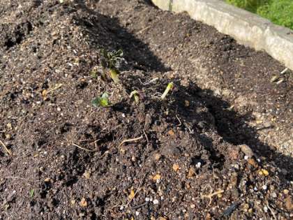 22日(水)の記事で,海野先生が植えていたのは,ジャガイモ!みんなが知っているジャガイモを,そのままほっておくと,芽が出てくるって知っていましたか?芽が出たジャガイモを学校園に植えていました。ジャガイモはすくすくと育っています。ジャガイモを使った授業を行うのが楽しみですね。