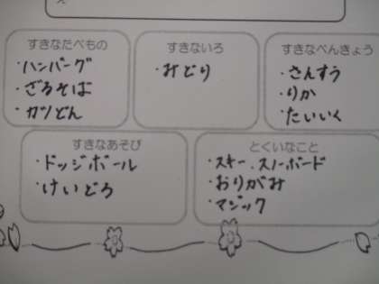 二年生のみなさん,しゅくだいのじこしょうかいカードは,かきましたか?先生たちはみんながつくったじこしょうかいカードがとてもたのしみです!!