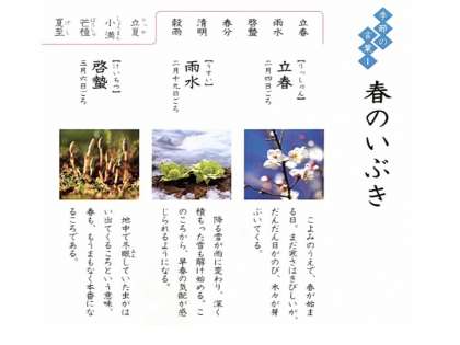 というように,それぞれに意味があります。教科書のP38・39・76・77・130・131・182・183を読んで,二十四節気を覚えたり意味を調べたりしてみましょう。