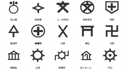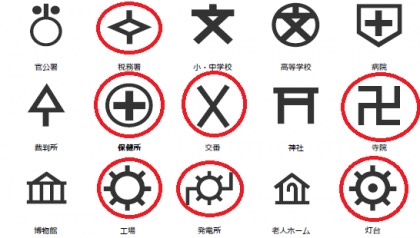 3年生で習った地図記号ですが,地図記号によっては,ある点を中心にして,180度回すとぴったり重なる「点対称」な地図記号があります。