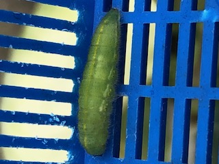 よう虫は脱皮(だっぴ)をして,大きくなるそうです。このよう虫はだっぴした後だと思います。