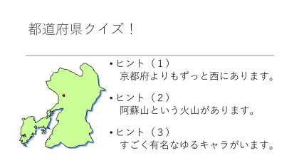 では,早速,ゴールデンウィークでお休みモードの頭を起こしましょう!!都道府県クイズ第2弾です!!まだまだ簡単ですよ〜!!
