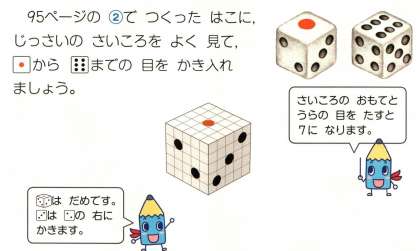 2年生の 教科書に のっている サイコロをつくってみよう。